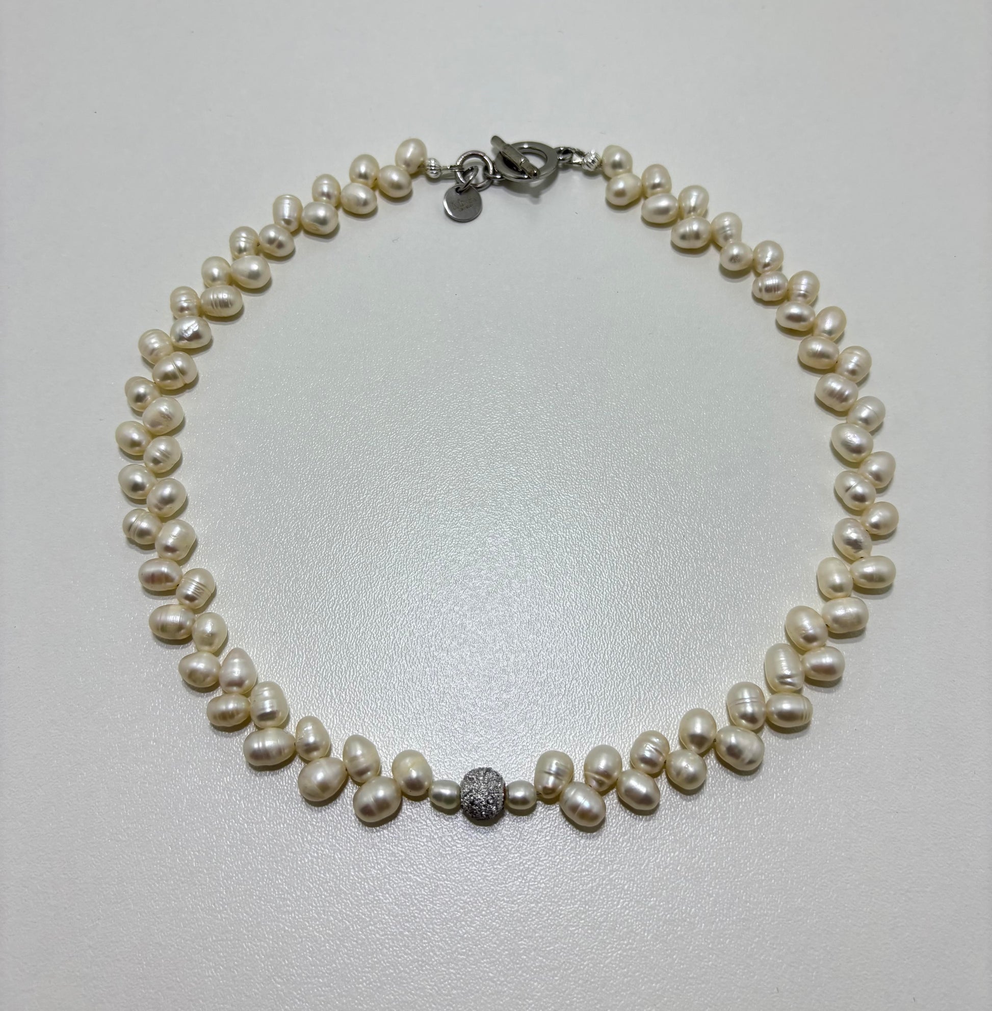 Deze ketting draagt heel chique en elegant en zou ook perfect bij een champagne kleurige of witte bruidsjurk passen.