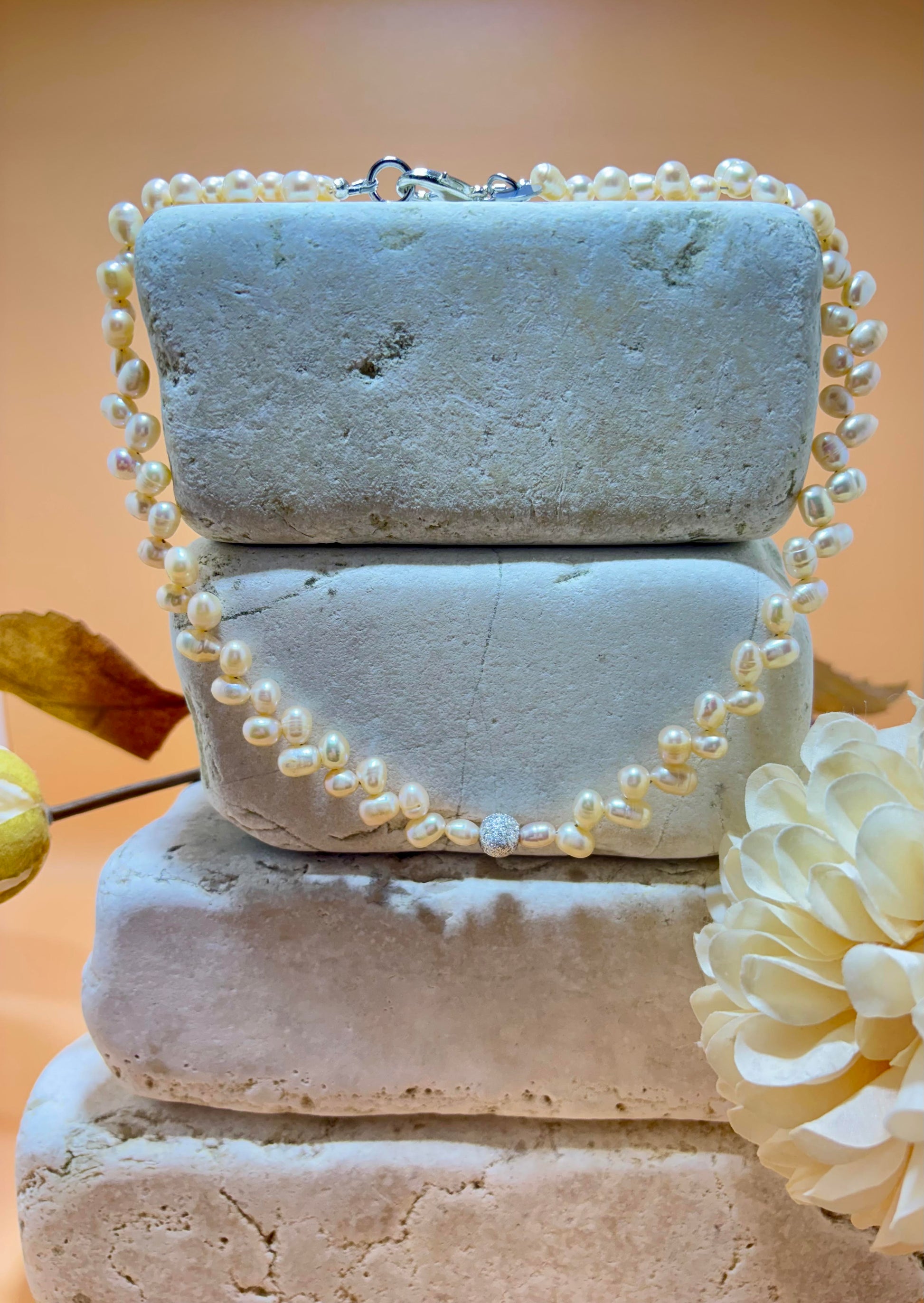 Deze ketting draagt heel chique en elegant en zou ook perfect bij een champagne kleurige of witte bruidsjurk passen.