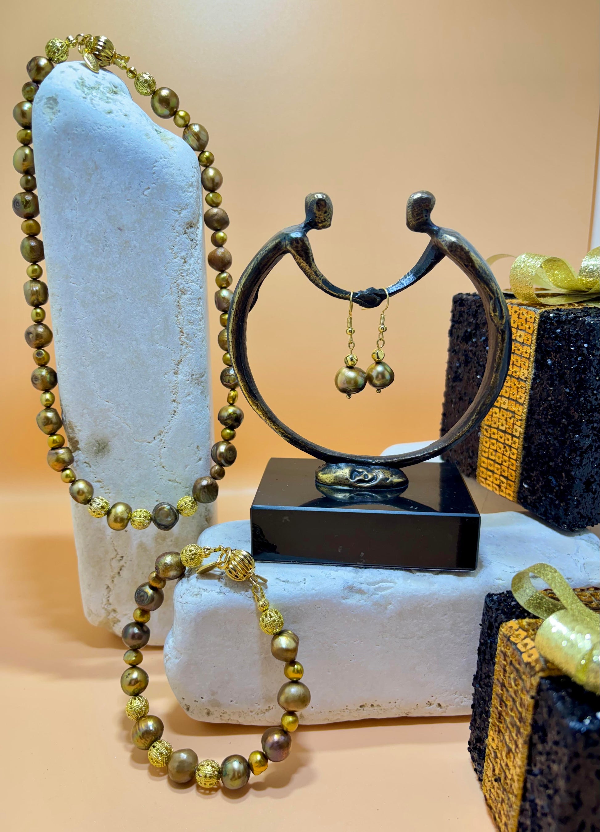 Deze set draagt heel chique en heeft een mooie gouden gloed over zich.
